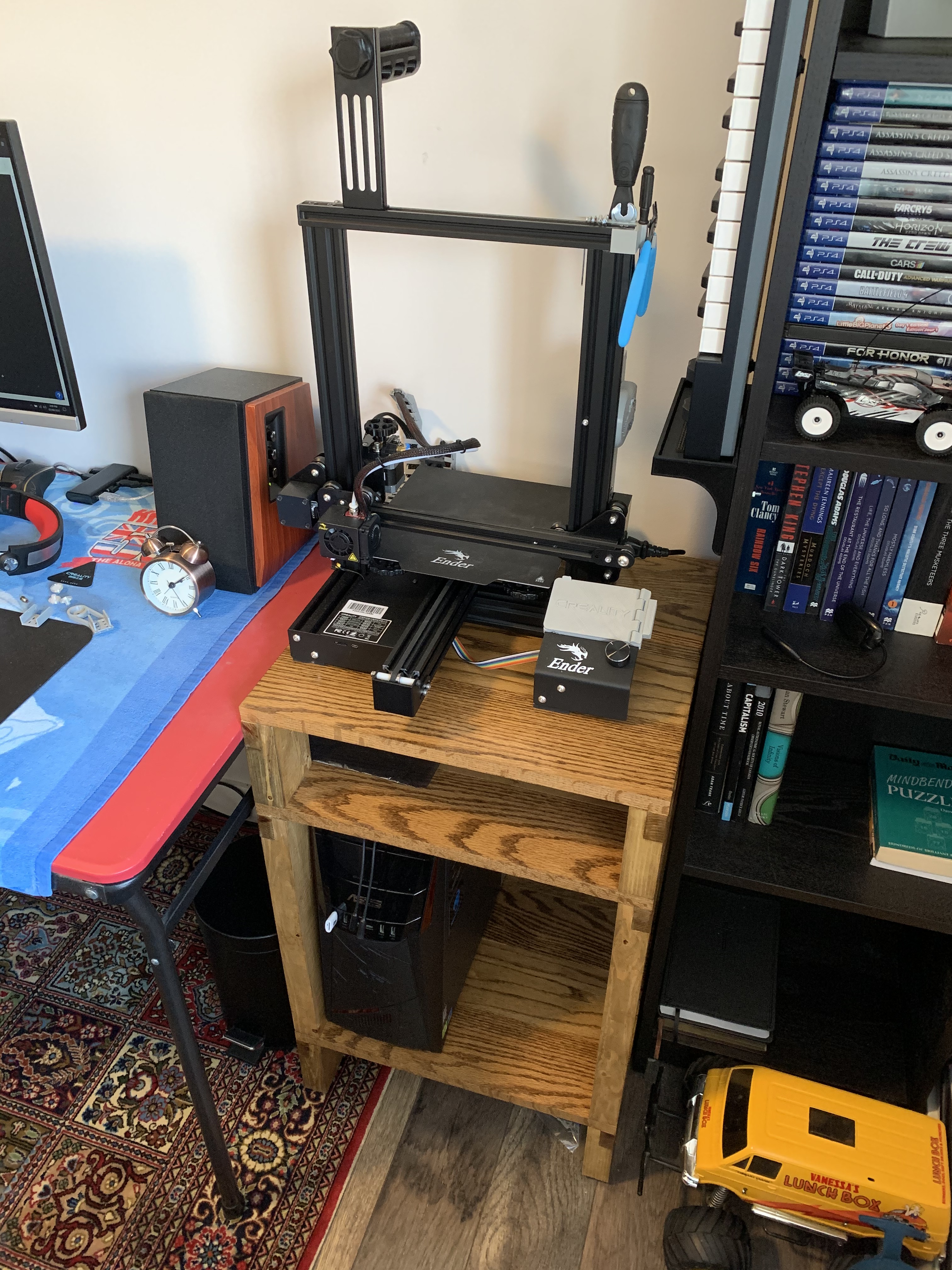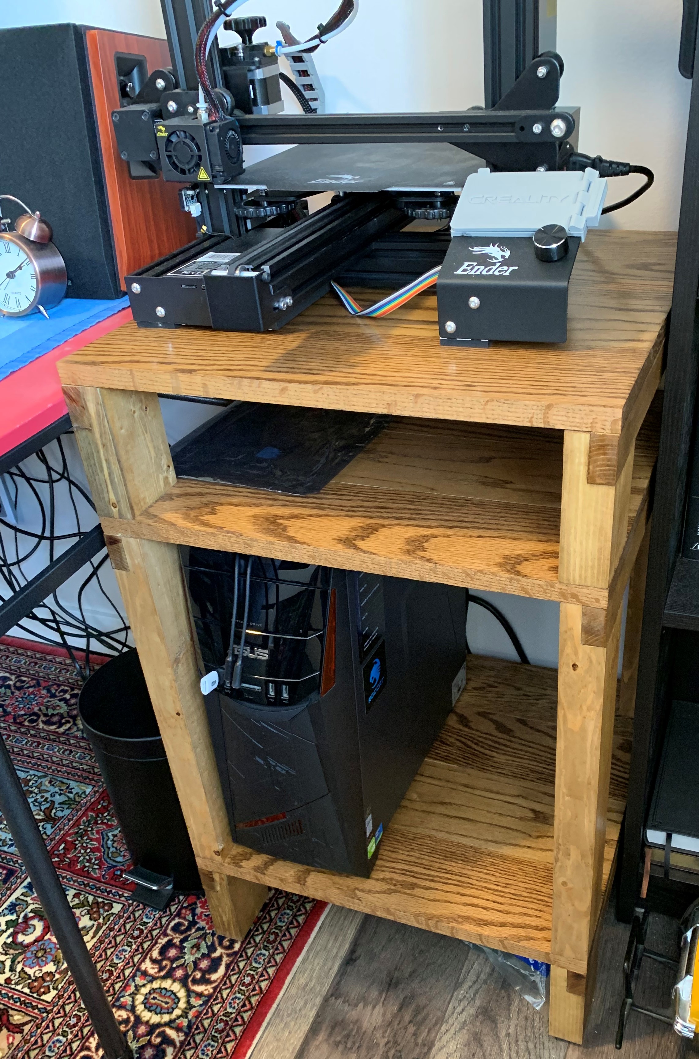 I built a side table out of Red Oak and Pine to place my Ender 3 Pro 3D printer on and to house my PC.
