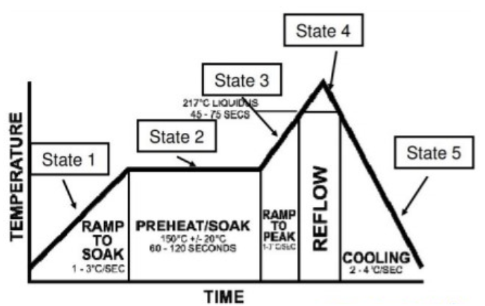 These plots represent our goals compared to the outcomes. After the initial ramp up to 150°C, the oven preheats the PCB for a period of time before ramping up to reflow temperatures of 220°C.